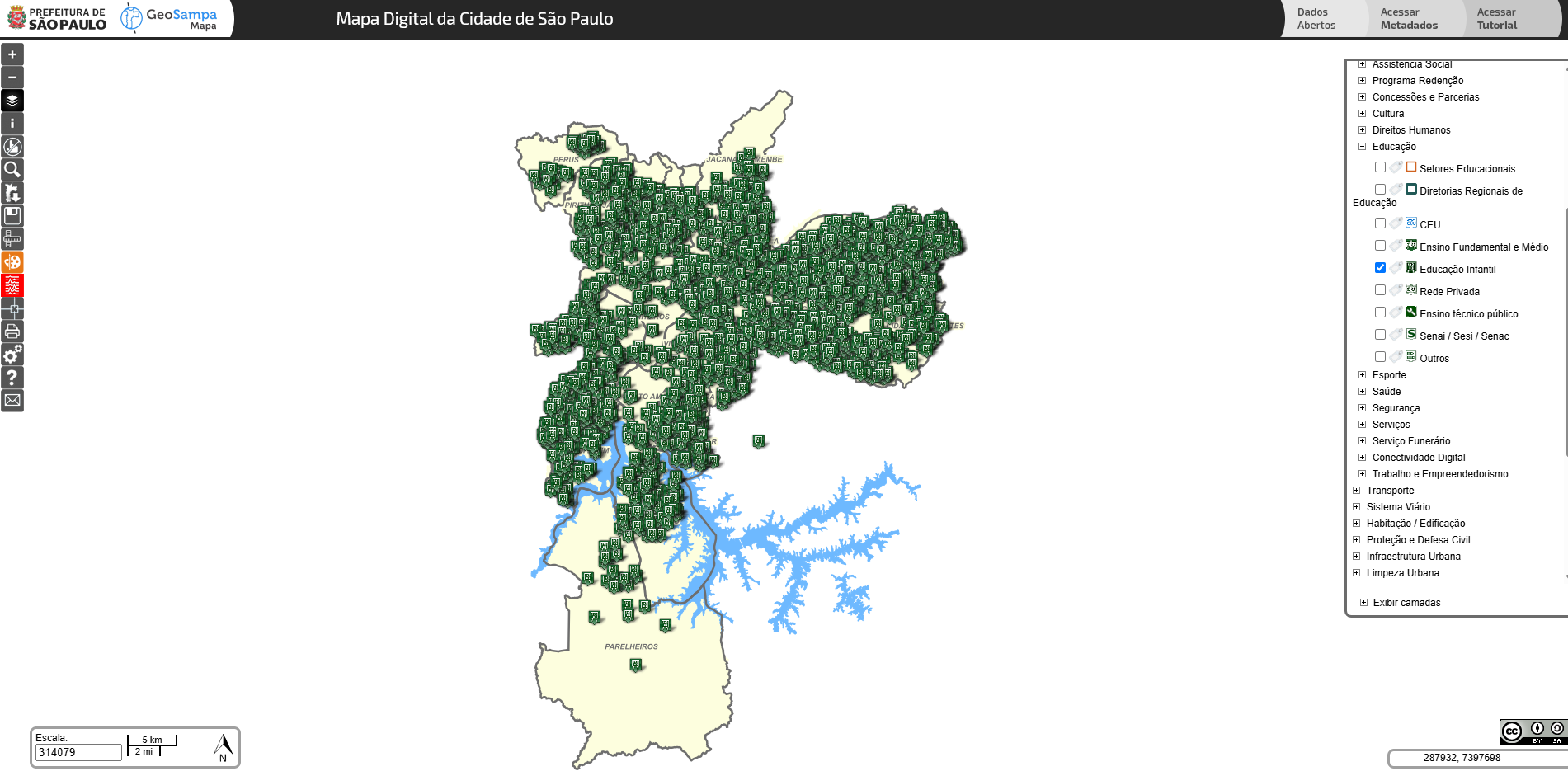 Identificação dos pontos georreferenciados de estabelecimentos de Ensino de Educação Infantil da rede pública no Município de São Paulo. A camada contempla as seguintes categorias de estabelecimentos que compõem a rede municipal, com exceção daquelas localizadas dentro dos Centros Educacionais Unificados (CEUs): • Centro de Educação Infantil Municipal (CEI DIRET - creche da administração direta) • Centro de Educação Infantil (CEI INDIR - creche conveniada da administração indireta) • Centro de Convivência Infantil/ Centro Infantil de Proteção à Saúde (CCI/CIPS) • Creche Particular Conveniada (administrada por organização social via repasse de verbas pela PMSP) • Centro Municipal de Educação Infantil (CEMEI) • Escola Municipal de Educação Infantil (EMEI) Dados extraídos do Censo Escolar da Educação Básica, realizado anualmente em nível federal sob a responsabilidade do Instituto Nacional de Estudos e Pesquisas Educacionais Anísio Teixeira, do Ministério da Educação (MEC/Inep). O Censo Escolar é realizado anualmente e a declaração é obrigatória para todas as escolas públicas e privadas do país.