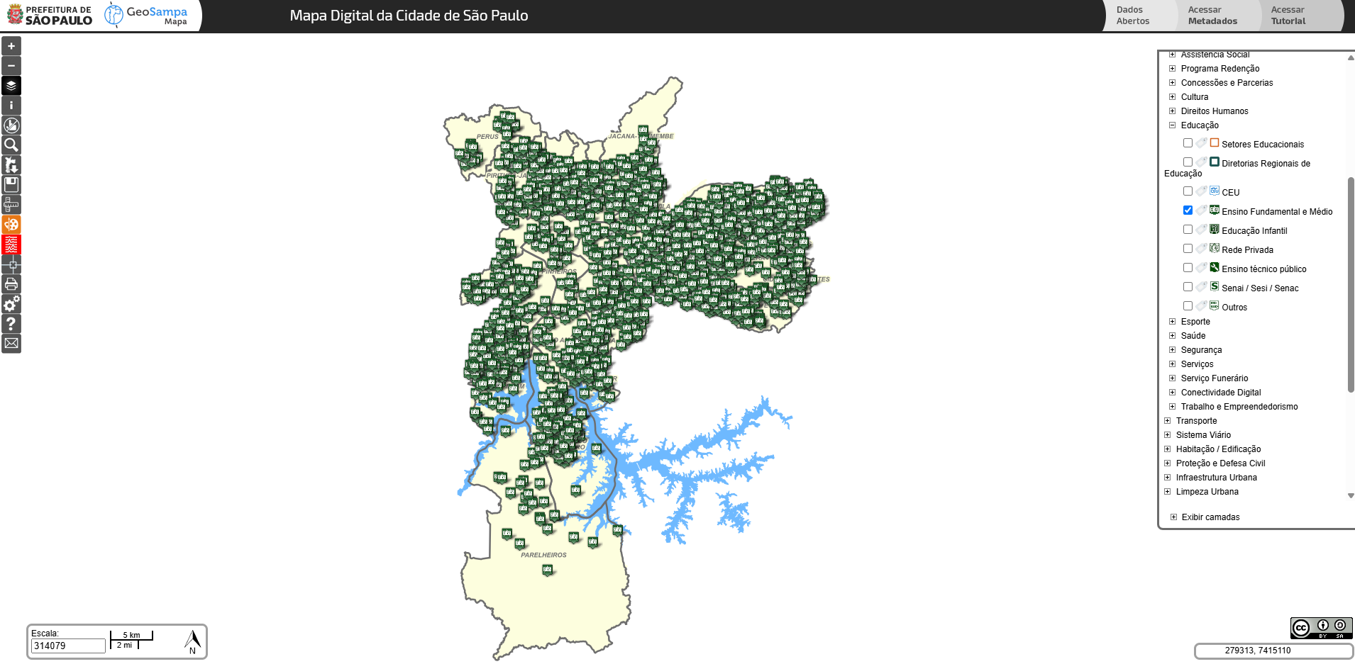Identificação dos pontos georreferenciados de estabelecimentos de Ensino Fundamental e Médio da rede pública no Município de São Paulo. A camada contempla as escolas municipais e estaduais de ensino fundamental e médio (EMEF, EMEFM e EE), com exceção daquelas localizadas dentro dos Centros Educacionais Unificados (CEUs). Dados extraídos do Censo Escolar da Educação Básica, realizado anualmente em nível federal sob a responsabilidade do Instituto Nacional de Estudos e Pesquisas Educacionais Anísio Teixeira, do Ministério da Educação (MEC/Inep). O Censo Escolar é realizado anualmente e a declaração é obrigatória para todas as escolas públicas e privadas do país.