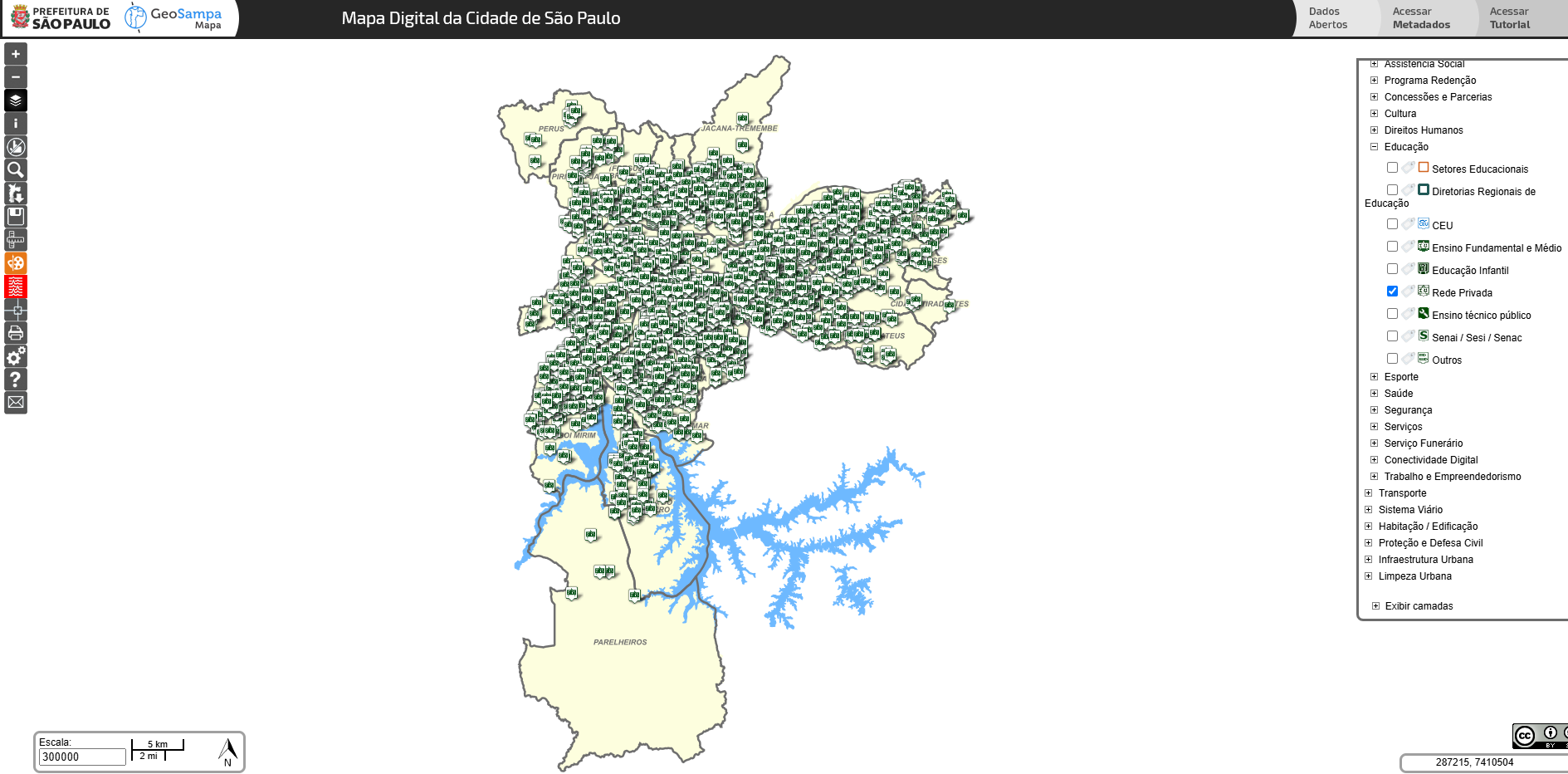Identificação dos pontos georreferenciados de estabelecimentos de Ensino da rede privada no Município de São Paulo. A camada contempla as escolas privadas comuns e escolas privadas comunitárias (ONG, sindicato, sem fins lucrativos) de todos níveis (da educação infantil ao ensino médio). Dados extraídos do Censo Escolar da Educação Básica, realizado anualmente em nível federal sob a responsabilidade do Instituto Nacional de Estudos e Pesquisas Educacionais Anísio Teixeira, do Ministério da Educação (MEC/Inep). O Censo Escolar é realizado anualmente e a declaração é obrigatória para todas as escolas públicas e privadas do país.