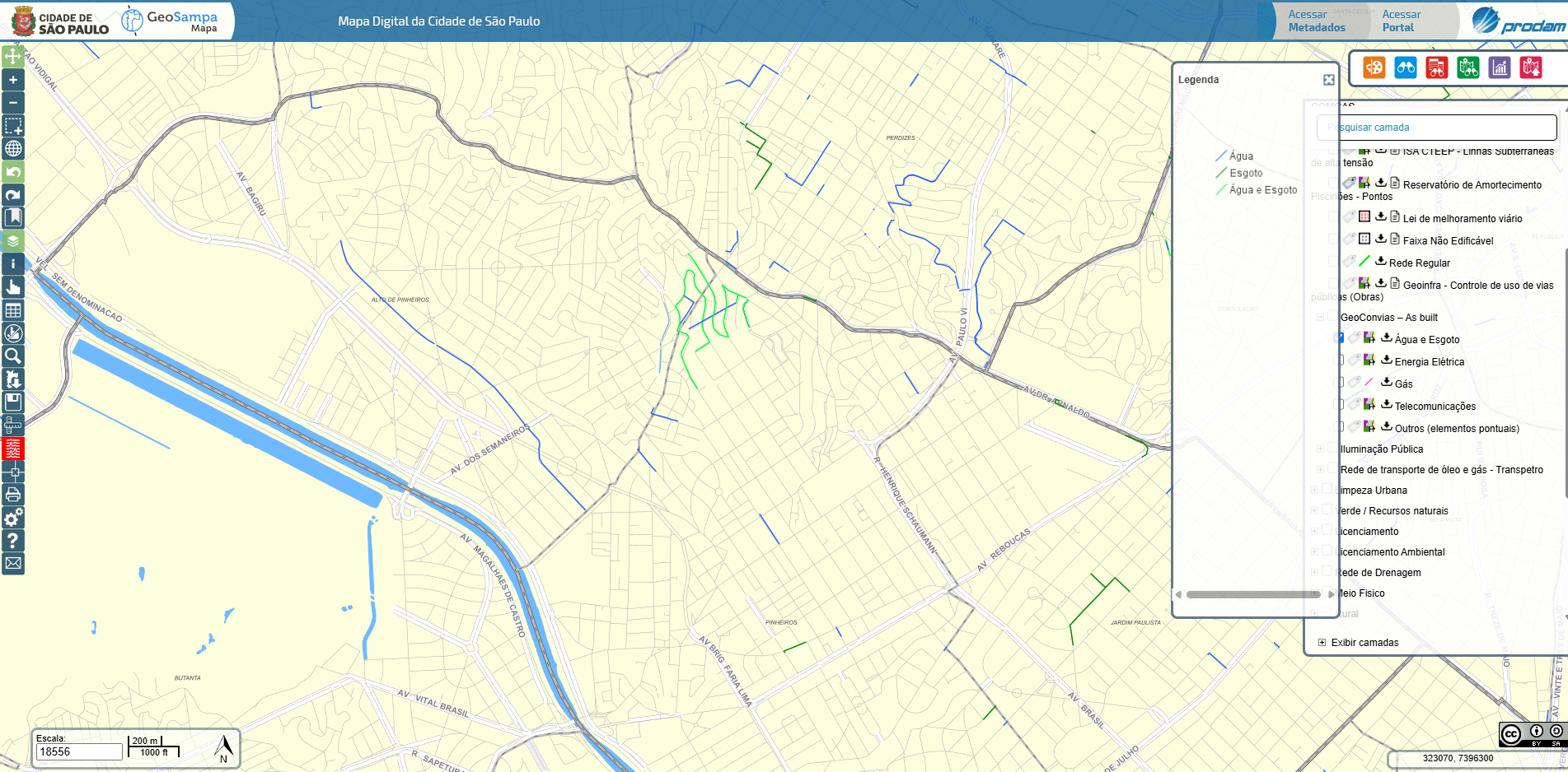 Rede de Água e Esgoto "as built" cadastrada no GeoConvias do Departamento do Controle e Cadastro de Infraestrutura - CONVIAS da Secretaria Municipal das Subprefeituras - SMSUB.