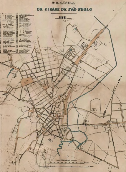 Mapa da Cidade de São Paulo oferecido a sua Majestade, o Imperador, pelo Presidente da Província Manoel da Fonseca Lima e Silva [1844-1847], elaborada por C.A Bresser, Engenheiro Civil.