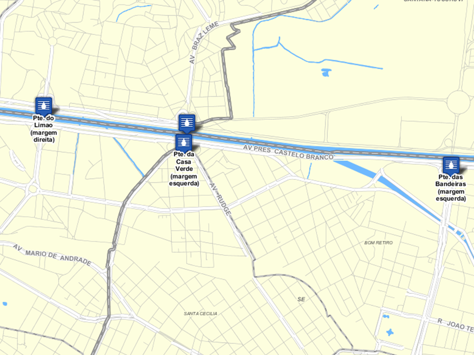 Representação vetorial da rede de drenagem da Cidade de São Paulo. Com foco no planejamento da drenagem urbana em bacias hidrográficas, a Secretaria Municipal de Infraestrutura Urbana e a Fundação Centro Tecnológico Hidráulica - FCTH desenvolvem os Cadernos de Bacias Hidrográficas, desde 2016. Os Cadernos fornecem informações atualizadas a respeito da rede hídrica, que são essenciais para a gestão eficaz das águas pluviais em áreas urbanas. Estes estudos têm como base a caracterização da situação atual da rede de drenagem, complementada e/ou verificada em campo por meio de levantamento topográfico. Além do mapeamento da rede hídrica, há a descrição detalhada do sistema de drenagem principal. Estas informações são incorporadas na atualização do traçado da rede de drenagem, aprimorando a precisão e a qualidade dos dados.