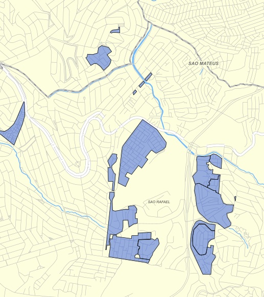 Polígonos que delimitam as áreas das favelas no Município de São Paulo. A delimitação vetorial do presente arquivo foi executada tendo como base cartográfica o MDC, Mapeamento Digital da Cidade de São Paulo de 2004, nas escalas 1:5.000 e 1:1.000.