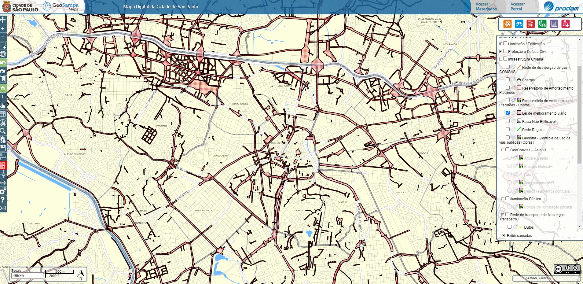 Apresenta os perímetros instituídos por leis de melhoramentos viários vigentes.