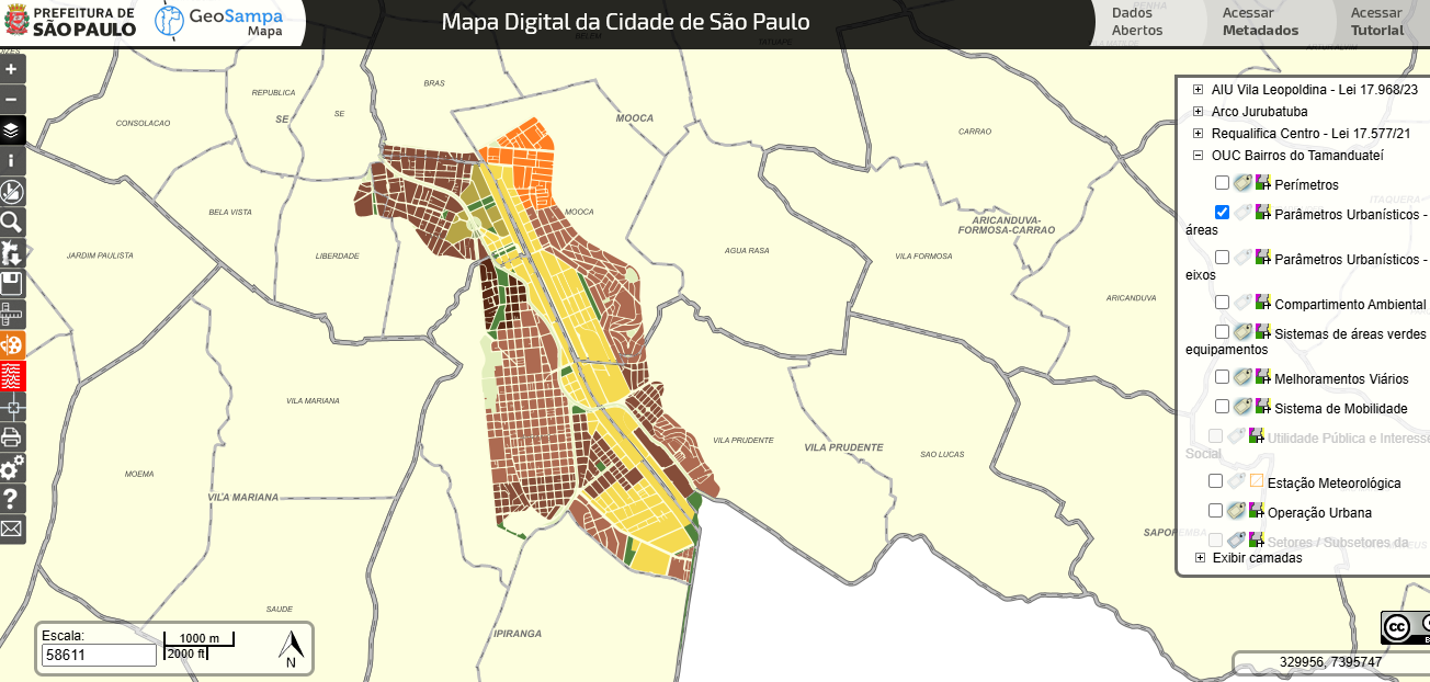 Perímetros criados e aprovados pelo Mapa 2 da Lei 18.079/2024, que aprova o projeto de intervenção urbana para o perímetro do Arco Tamanduateí e institui a Operação Urbana Consorciada Bairros do Tamanduateí.